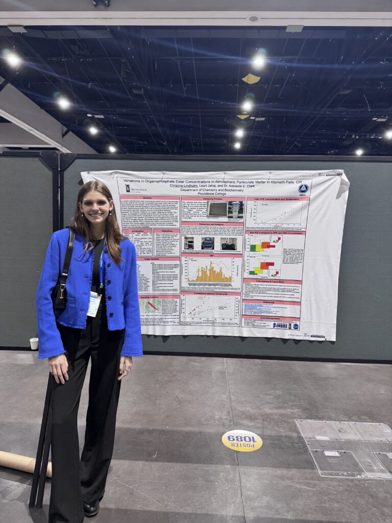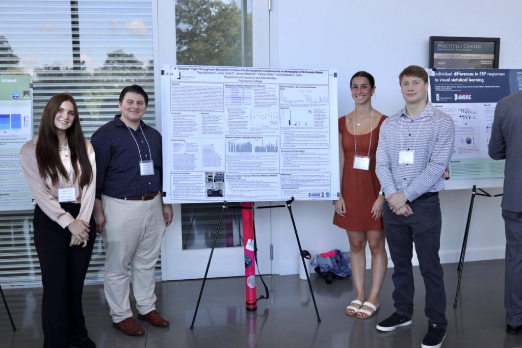 Dr. Clark’s research group started in 2022 to focus on investigating chemicals present in atmospheric particulate matter, specifically plasticizers and flame retardants. My students are analyzing samples collected around the country while taking our own samples using FriAir Net: The Friar Air Monitoring Network at Providence College. By better understanding what is in our air, we can better regulate these chemical exposures.